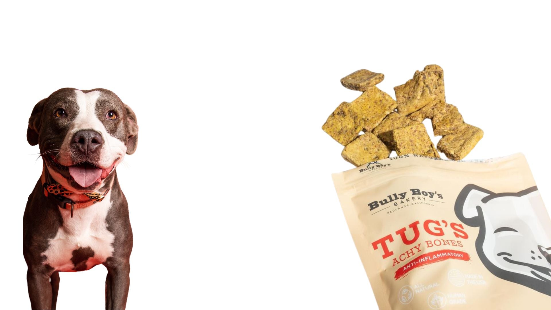 The mission of Bully Boy's Bakery is to promote the health and well-being of all dogs. With our proceeds, we support adoption, no-kill animal shelters, and destigmatizing efforts of bully breeds. Every purchase with Bully Boy's Bakery will benefit your furry family member's health and happiness, as well as support this important mission!